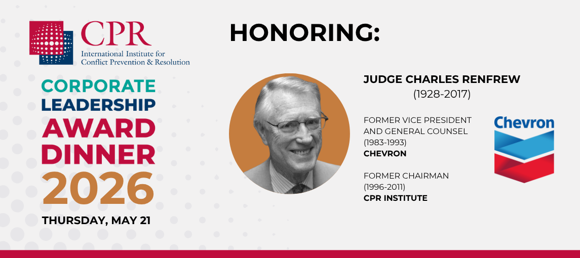 And as the pre-eminent organization that brings together in-house counsel at leading companies, law firm counsel, and other ADR stakeholders, sponsorship of CPR Institute events is a valuable tool to build brand awareness among these key audiences.